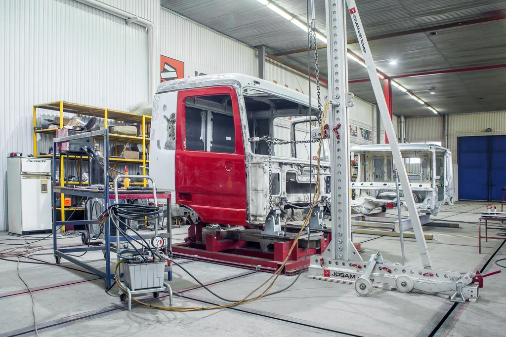 - восстановление геометрии: рихтовка кузова грузовика и контроль размеров;